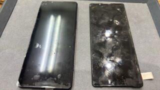 ご自宅でうっかり落としてしまい割れてしまったそうで、そのまましばらく状態を放置して使用されたそうですが段々映りも悪くなってしまったそうで、今回当店で交換修理を行ないました!