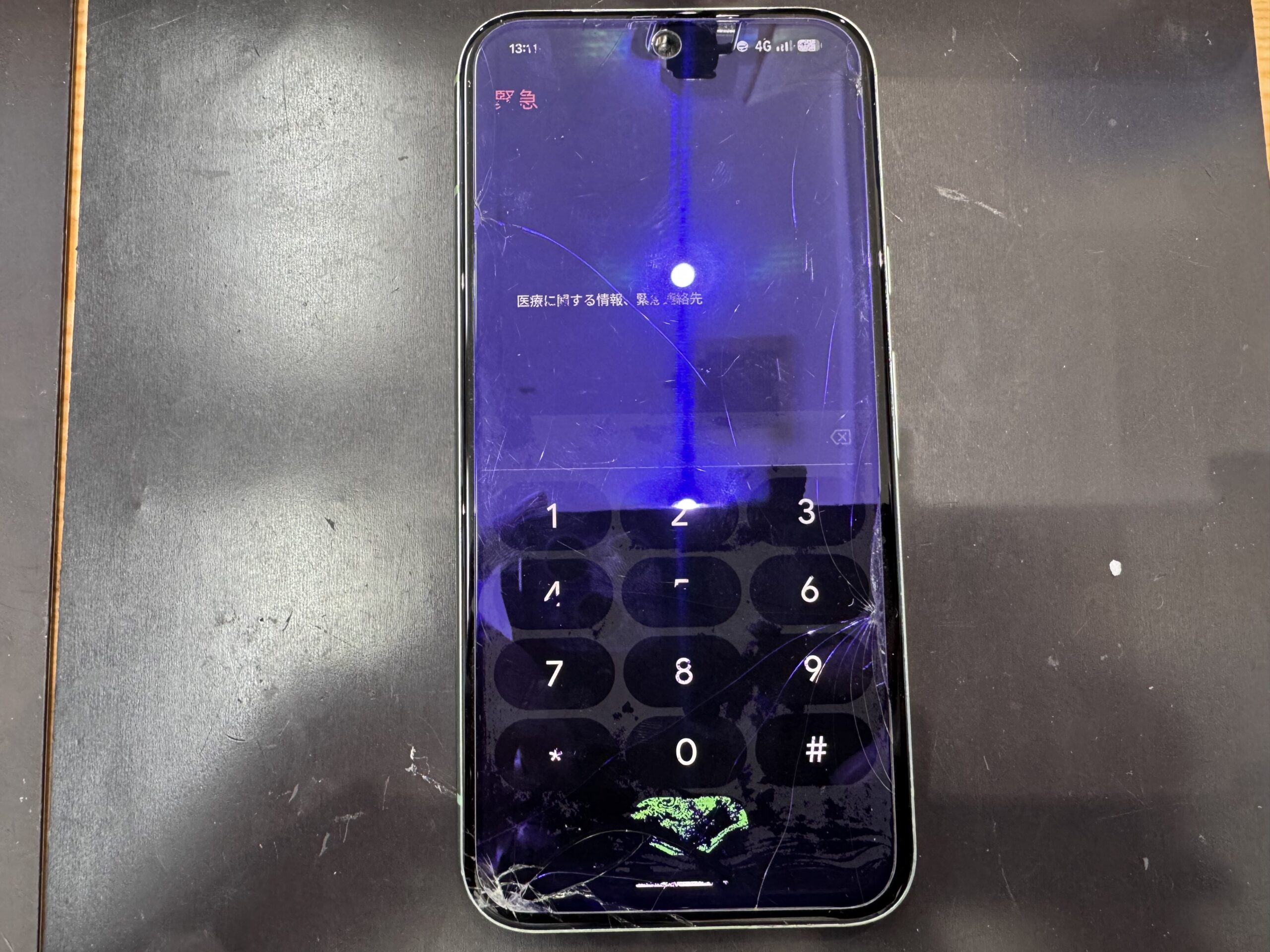 高所で仕事をされているという方で、作業中にポケットから落としてしまい画面が破損し画面の映りが悪くなりタッチも効きづらい状態になってしまったとのこと。操作が難しくデータのバックアップを取ることができないため、今回新しい画面に交換させて頂きました!!