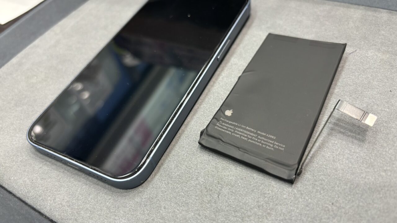 iPhone14のバッテリー交換修理、即日修理をおこなっております。