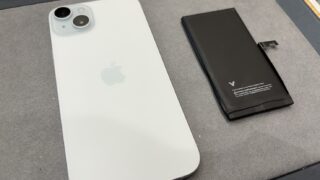iPhone15のアウトカメラ部品を交換する際は、まず背面パネルを開ける必要があります。画面と同様背面パネルもガラス状で割れやすいので慎重に取り外さなければなりません。熱を加えながらゆっくり開けるとバッテリーや基板など部品を取り外すことができるようになります。バッテリーの接続を外してからカメラ部品の交換を行います。iPhone15のカメラ部品は広角カメラと超広角カメラの2つがセットになっていて両方交換する形になります。