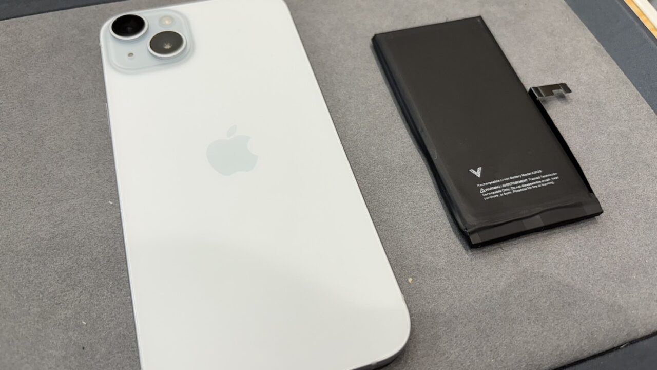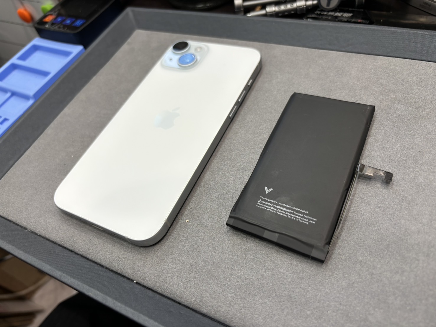 iPhone15Plusのバッテリー交換修理、即日修理をおこなっております。